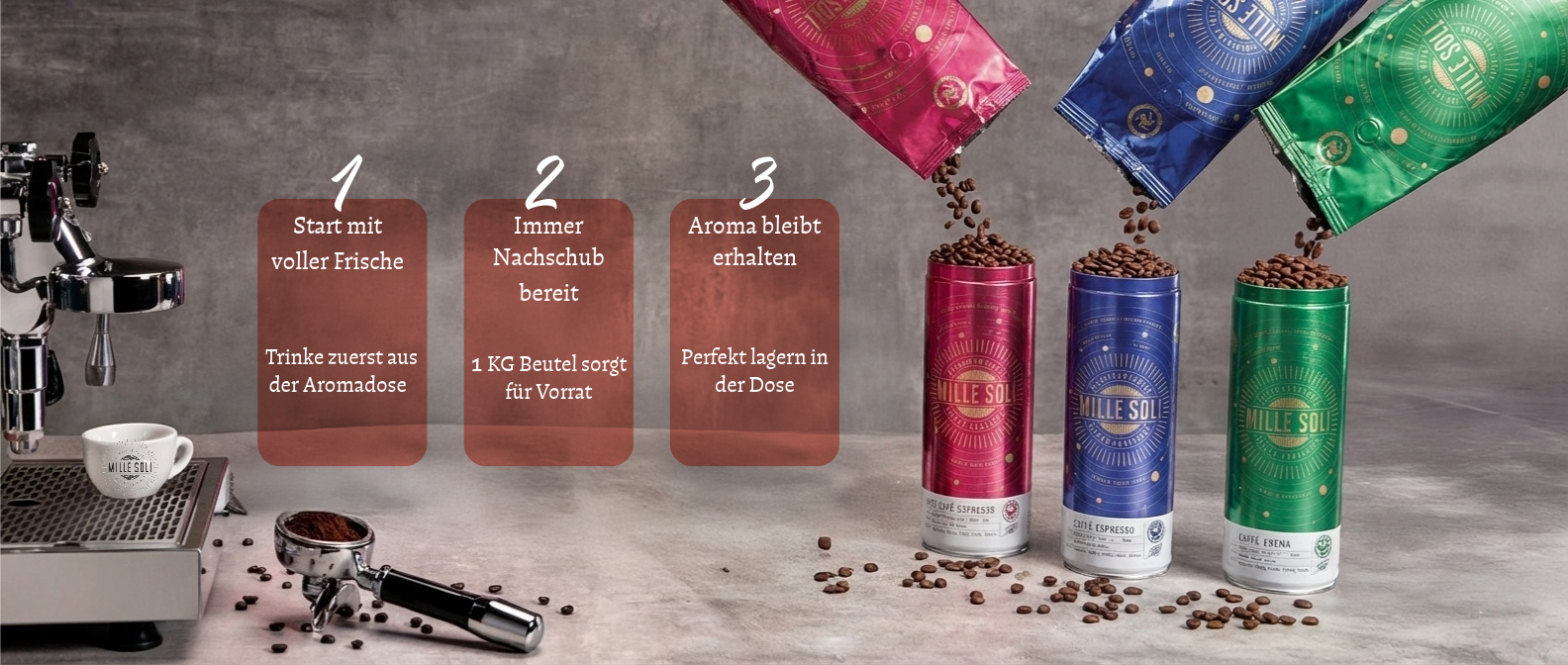 Mille Soli Caffè Espresso Frische-Set 1 kg Beutel + 500 g Aromadose